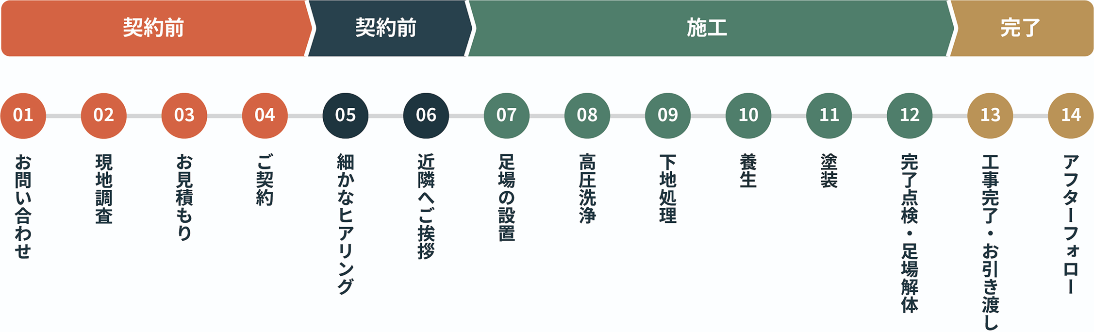 お問い合わせからお引き渡しまでの流れをわかりやすくまとめました。